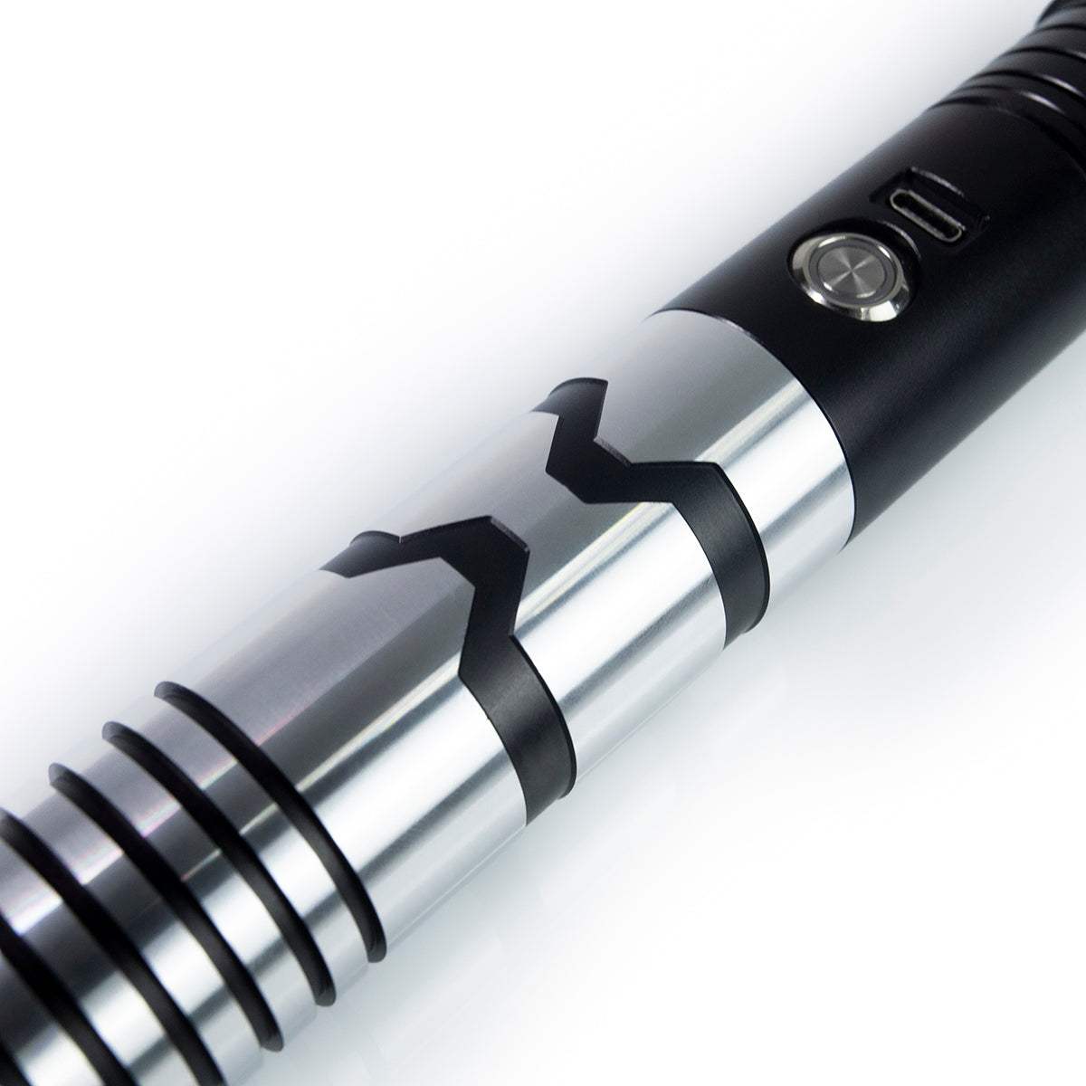Konsularisches Lichtschwert – eine atemberaubende Waffe, die Eleganz und Präzision verkörpert, perfekt für erfahrene Machtnutzer. Dieses Lichtschwert verfügt über einen schlanken schwarzen Griff mit auffälligen silbernen Akzenten, die ihm eine anspruchsvolle und doch beeindruckende Präsenz verleihen.
