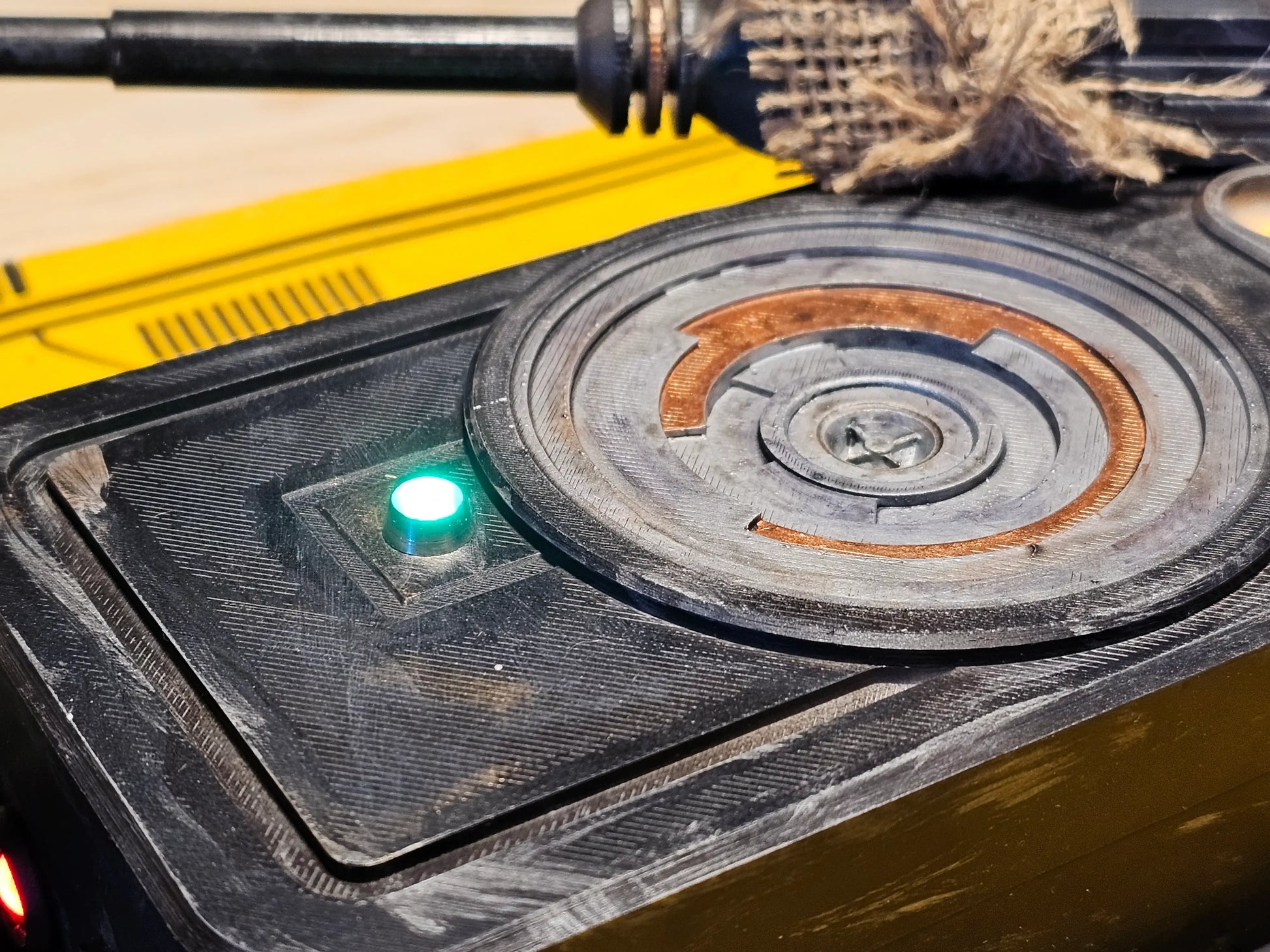 🔵 Four LED lights that blink and glow, replicating the look and feel of the in-game device.